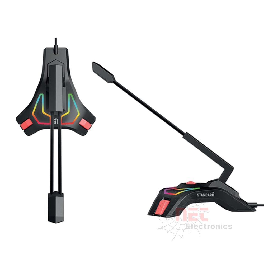 يظهر ميكروفون ألعاب (Gaming Microphone) مكتبي يدعم إضاءة RGB. من المرجح جداً أن يكون هذا الطراز هو